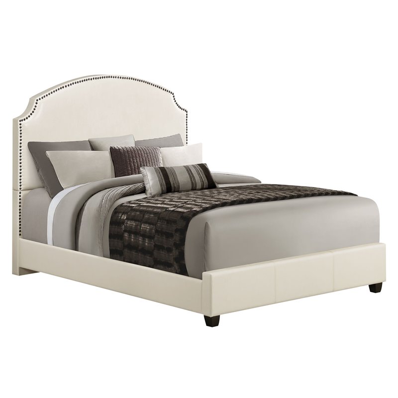 | ACME Furniture - Beds - 24707EK - The Kristina Bed features contemporary style reflected in its elegant Panel Headboard with clipped corners, low profile footboard, and side rails all covered in smooth faux leather, complemented by detailed nail-head trim. Grace, style and comfort blend together to create the perfect atmosphere with this upholstered bed. Finish: CreamMaterial: PU, CAFR Foam, MDFPanel HeadboardLow profile footboardFaux leather side railsNail-head trimSpecifications:Overall Product Dimensions: 40H x 90W x 80DProduct Weight: 110 lbs