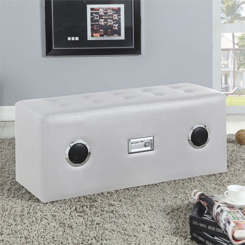 | ACME Furniture - Living Room Benches - 96527 - This Laila sound lounge bench collection will ricc personality and entertaining to your living room. The stylish bench features an integrated bluetooth speaker and padded seat with button tufted cushion. You can relax on this bench with your favorite stream music. Availble in different colors from orange, white and black. Finish: WhiteMaterial: PU, FR FoamMusic Player & Stereo Speaker (Bluetooth, MP3, Radio, SD Card, Aux)Button Tufted Seat CushionPadded Seat: PUStorage Not IncludedSpecifications:Overall Product Dimensions: 17H x 38W x 15DProduct Weight: 31 lbsseat height:17