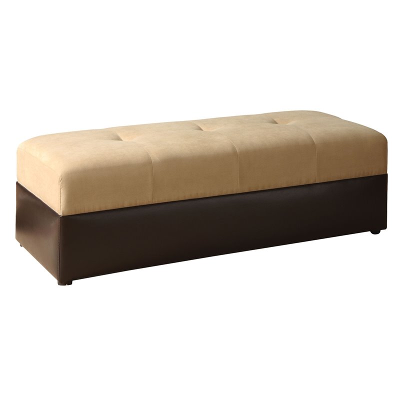 | ACME Furniture - Ottomans - 05777W - This Lakeland Sand Microfiber/Espresso PU Ottoman is upholstered in sand microfiber and espresso PU for contrasting stylish look. Simple, straight, square shapes give this the Lakeland Collection a very clean and modern feel. Finish: Sand , EspressoMaterial: Microfiber, PVC, Plastic Leg, Flame Retardant FoamCushion in MicrofiberTop w/Dimple DecorationPlastic LegWithout Storage FunctionSpecifications:Overall Product Dimensions: 18H x 55W x 21DProduct Weight: 26 lbsseat height:18
