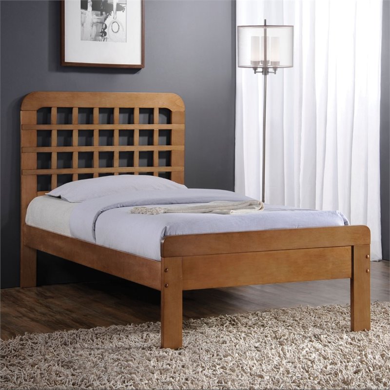| ACME Furniture - Beds - 25363F - The Lynford Collection Bed features expert construction of solid woods and veneers. High Panel Headboard with grid pattern design and low profile footboard are complemented with a slat system foundation that allows it to be used with or without box spring. Finish: OakMaterial: Poplar WoodUpholstered Bed13 SlatsLow Profile FootboardAvailable in 2 ColorsSpecifications:Overall Product Dimensions: 44H x 78W x 57DProduct Weight: 58 lbs