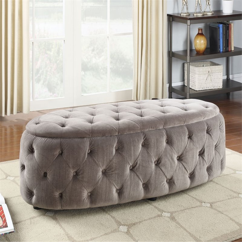 | ACME Furniture - Living Room Benches - 96507 - The Maddy Bench will be a sophisticated addition to your living or bedroom area. This elegant cocktail ottoman is fully covered with gray fabric diamond button tufted, the oversized shape will create a marvelous surface to be used occasional table or an extra seat. Finish: Light-GrayMaterial: Fabric, Foam (TB117-2013)Button TuftedPadded Seat: Fabric CushionOval ShapePlastic LegAssambledSpecifications:Overall Product Dimensions: 21H x 57W x 24DProduct Weight: 32 lbsseat height:21
