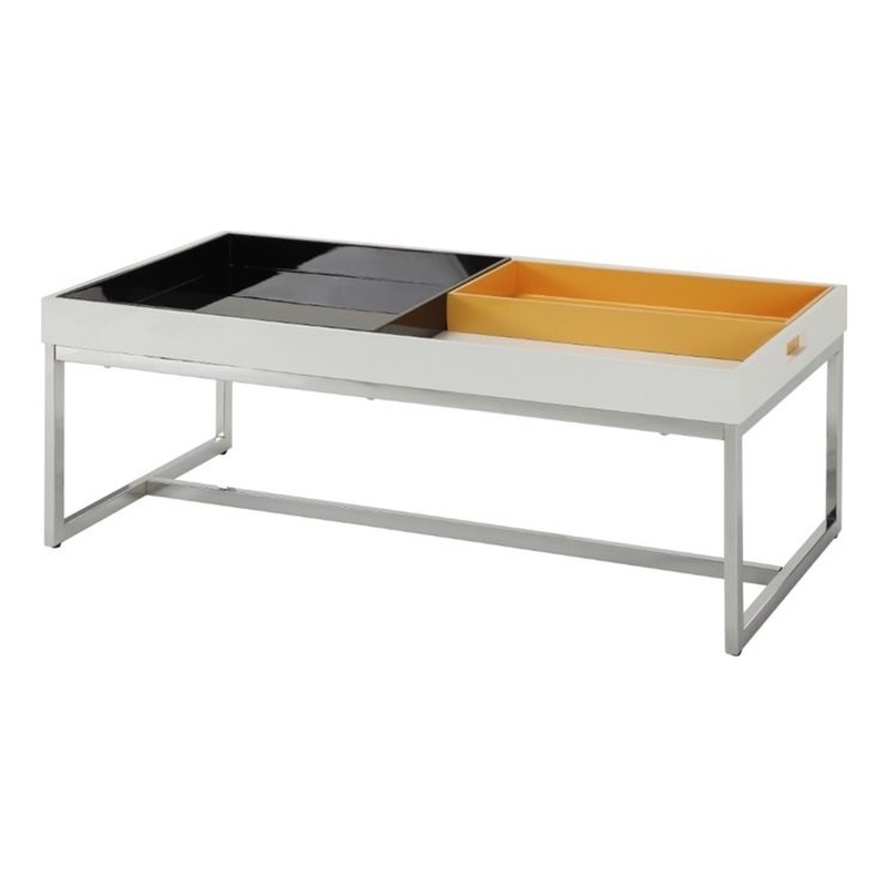 | ACME Furniture - Coffee Tables - 80435 - The Maisie coffee table is the best matching with a contemporary style living room. The metal tube frames have stylish chrome finish for a modern look. The top of the table with the compartments provides the prerfect place to put magazine, TV remotes or vases. Finish: White & ChromeMaterial: Metal Tube, High Density MDFRemovable Tray IncludedTop: White High Gloss MDFLeg: Chrome Metal TubeSpecifications:Overall Product Dimensions: 18H x 47W x 24DProduct Weight: 44 lbs