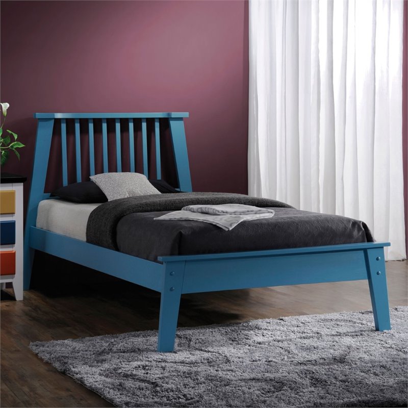| ACME Furniture - Beds - 25400Q - The Marlton Collection Bed features expert construction of solid woods and veneers. High Panel Headboard with slatted design and low profile footboard are complemented with a slat system foundation that allows it to be used with or without box spring. Finish: BlueMaterial: Poplar WoodSlat Style Headboard13 SlatsLow Profile FootboardAvailable in 2 ColorsSpecifications:Overall Product Dimensions: 40H x 86W x 66DProduct Weight: 63 lbs