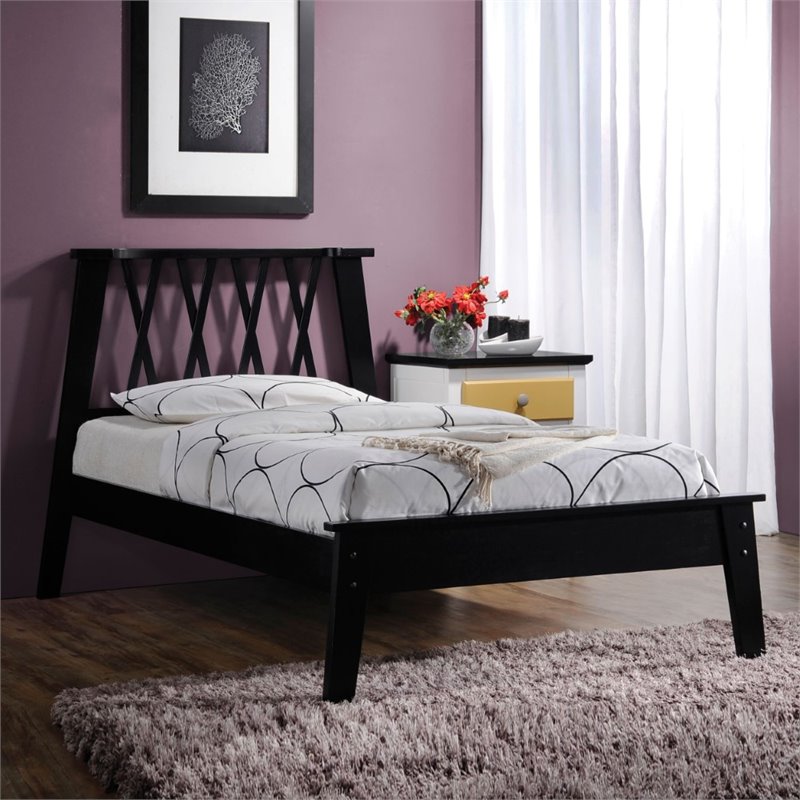 | ACME Furniture - Beds - 25395T - The Moffett Collection Bed features expert construction of solid woods and veneers. High Panel Headboard with X pattern design and low profile footboard are complemented with a slat system foundation that allows it to be used with or without box spring. Finish: BlackMaterial: Poplar WoodX Style Headboard13 SlatsLow Profile FootboardAvailable in 2 ColorsSpecifications:Overall Product Dimensions: 40H x 80W x 44DProduct Weight: 47 lbs