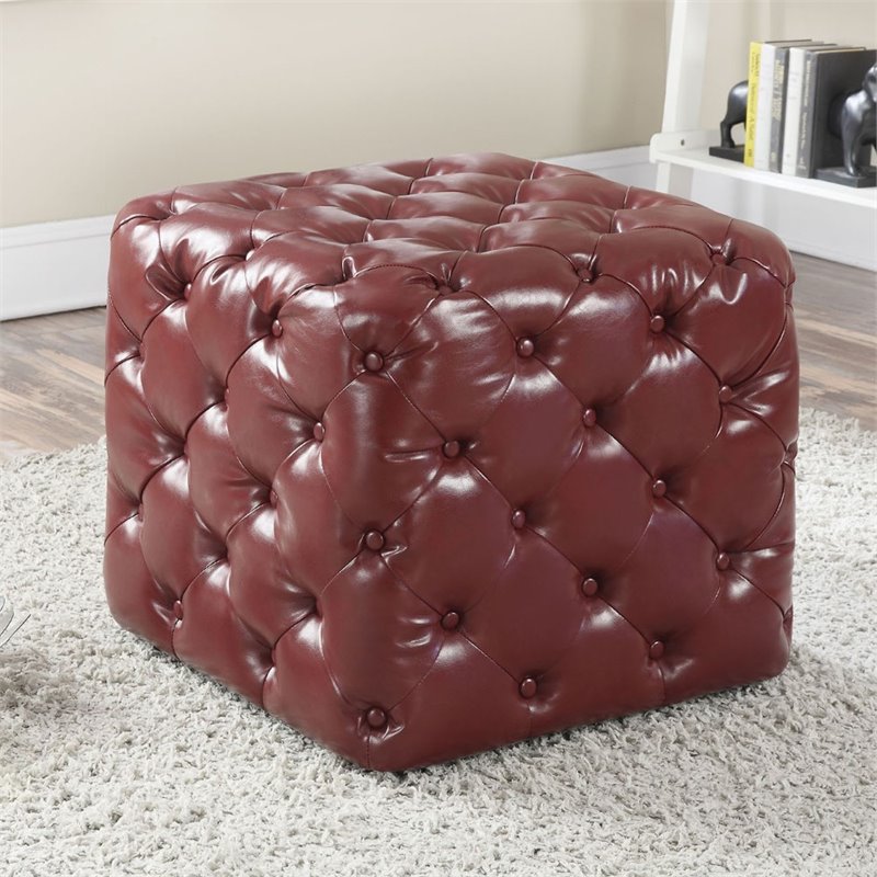 | ACME Furniture - Ottomans - 96500 - This Norris ottoman will be a nice addition to your home. Use in your living room, family room, or other areas for a comfortable touch. The cube shaped ottoman is fully upholstered in faux leather and tufted with buttons, with small plastic leg on the bottom. Available in Burgundy PU or Espresso PU. Finish: BurgundyMaterial: Pu, Foam (TB117-2013)Button TuftedPadded Seat CushionPlastic LegStorage Not IncludedSpecifications:Overall Product Dimensions: 21H x 24W x 24DProduct Weight: 24 lbsweight capacity: 250Lbsseat height:21