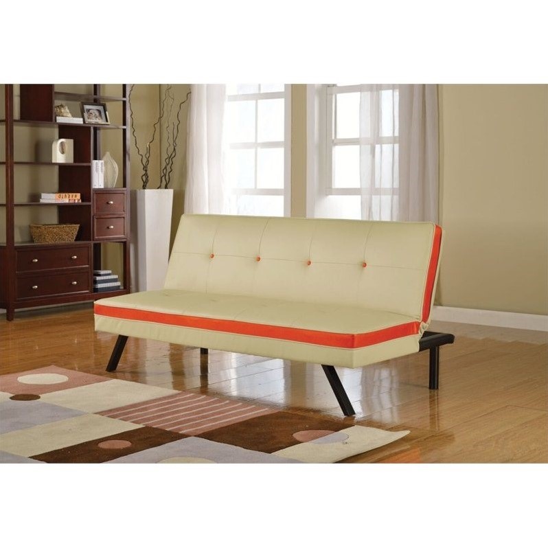 | ACME Furniture - Convertible Sofas - 57106 - The faux leather upholstery of the Penly sleeper sofa make it the ideal low maintenance purchase. The polyurethane faux leather is easy to clean and is also fade and stain resistant. The button tufted detail on the back adds an element of quality and craftsmanship. The striking contrast between the cream and red finish adds flare to it's modern design. It offers affordable functionality servings as a sofa or sofa bed. Ideal for small living spaces by utilizing available space.Finish: Cream and Red; Material: Faux leather (polyurethane); Converts from a loveseat to a sleeper sofa; High density foam is placed within the sofa for that extra touch of relaxation; Sturdy construction: Metal legs; Space saving design. Specifications:Overall Product Dimensions: 33 H x 66 W x 32 D; Product Weight: 65 lbs.