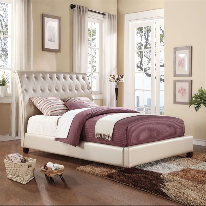 | ACME Furniture - Beds - 22837EK - The finished modern and nice gives a touch of harmony to any room, it has a finished in Pearl PU with crystals on the header details.The Coleccion Pitney is fantastic to give a touch of helpful to our space. Finish: PearlMaterial: PU, Pine & PolywoodSpring Box RequiredCrystal Like Button Tufted HeadboardSpecifications:Overall Product Dimensions: 53H x 95W x 90DProduct Weight: 129 lbs