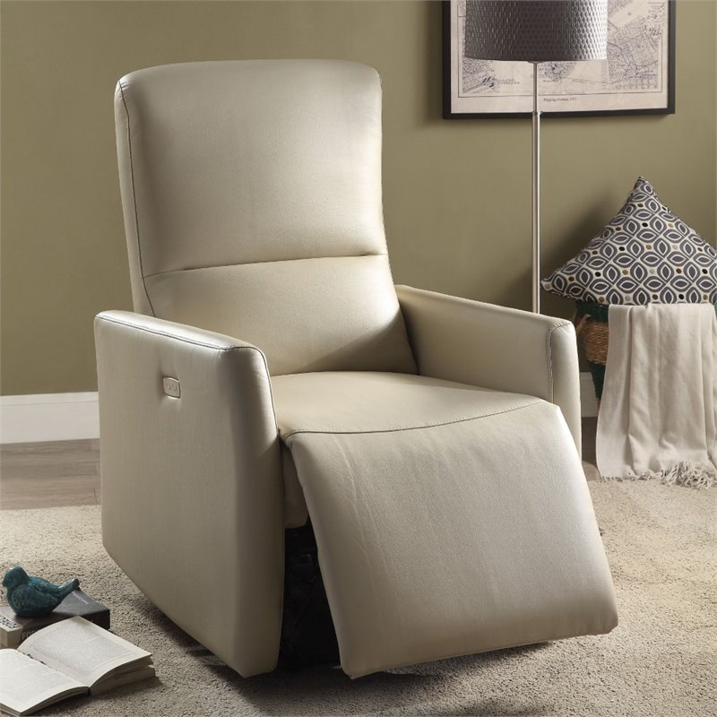 | ACME Furniture - Recliners - 59408 - The Raff power recliner offers comfort, style and value for any home. A smooth leather-aire upholstery provides relaxation from seat to toe with an easy to reach powered control for operating the reclining mechanism. Update your living room furniture with this comfortable, power reclining chair its great for any space and makes it perfect to relax, take a nap or read a book. Finish: BeigeMaterial: Leather-Aire, Polywood, Foam, Metal Reclining MechanismPower Motion: ReclinerTight Back & Seat CushionSpecifications:Overall Product Dimensions: 40H x 28W x 37DProduct Weight: 82 lbsweight capacity: 300Lbs