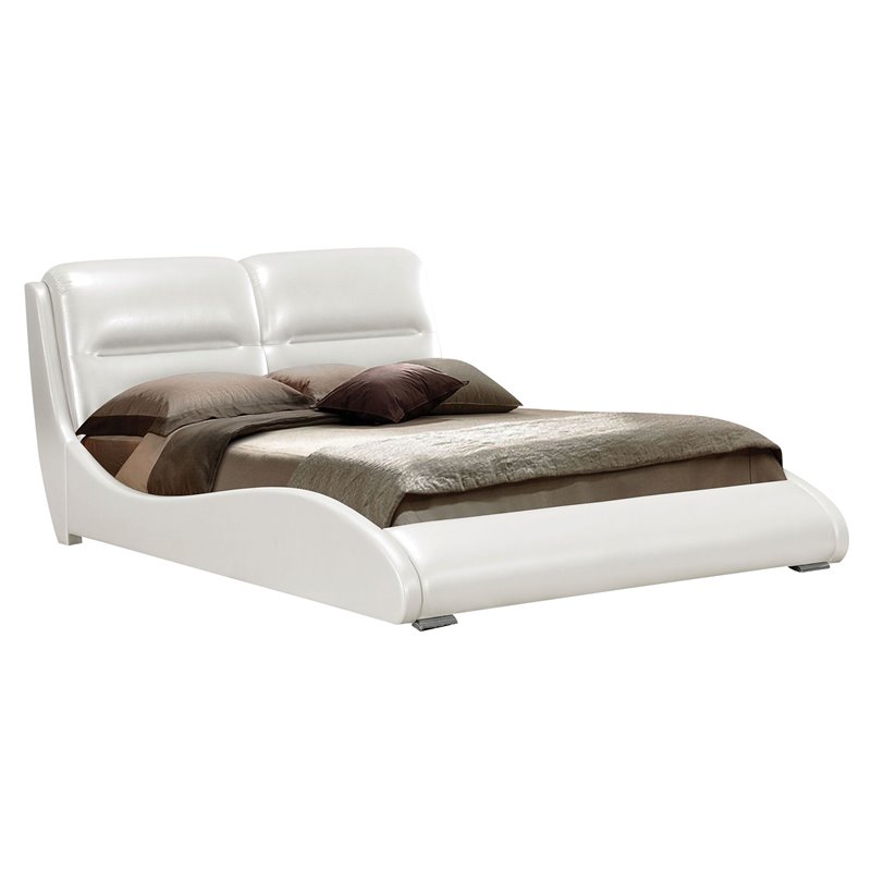 | ACME Furniture - Beds - 24720Q - The Romney bed is upholstered in faux leather. The modern bed has stylish curves that compliment most furniture. The Romney is professionally designed to be sturdy and features padded headrests. Finish: WhiteMaterial: Bycast PU, CAFR Foam, MDFBox Spring Not ReqiredPadded HeadboardChrome Metal LegCurving Side RailSpecifications:Overall Product Dimensions: 39H x 101W x 67DProduct Weight: 134 lbs
