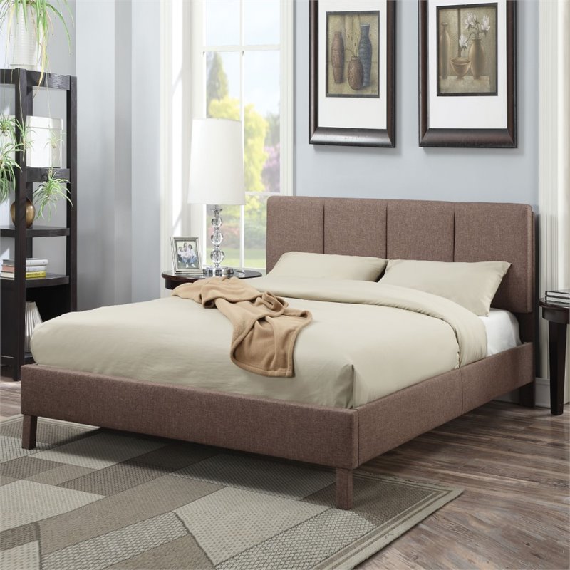 | ACME Furniture - Beds - 25077EK - The Rosanna upholstered bed combines style and comfort, features padded headboard perfect for relaxing, reading or watching television. The casual panel headboard will add just the right touch of style. Giving your bedroom a whole new look has never been easier with the Rosanna Bed Collection Finish: Light BrownMaterial: Linen Fabric, CA Foam (TB117), Frame: Wood (Solid) Hemlock /Fir Imported from CanadaUpholstered BedPanel HeadboardWooden LegsLight Brown LinenSpecifications:Overall Product Dimensions: 51H x 92W x 79DProduct Weight: 80 lbs