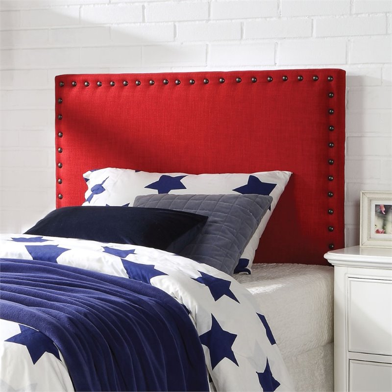 | ACME Furniture - Headboards - 39117 - The Sabina Headboard, creates a clean and contemporary look that will match any bedroom decor. Features beautifully upholstered straight panel headboard, covered in Linen Fabric with nail-head trim details, and sturdy inner frame. Available in Blue, Rec and Brown Finish. Bed frame not included. Finish: RedMaterial: Fabric, Frame: Pine Wood & Polywood, CAFR FoamPadded Headboard OnlyNail-head TrimAvailable in 3 ColorsSpecifications:Overall Product Dimensions: 42H x 64W x 4DProduct Weight: 26 lbs