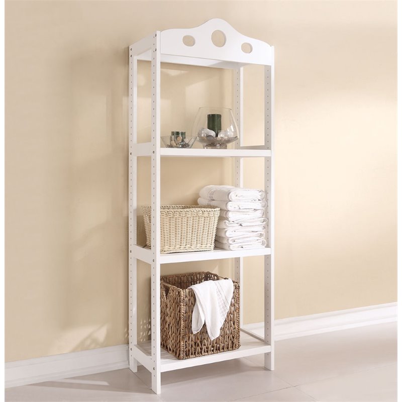 | ACME Furniture - Bookcases - 92098 - Add extra storage space to your bathroom with this casual bathroom rack. Beautifully crafted with white finish, it offers an abundance of storage options to keep your bathroom clutter-free and organized. It features 3 open shelves allow you to place hand towels, decorations, or accessories. Finish: WhiteMaterial: Solid Pine WoodWooden Cinstruction3 TiersSpecifications:Overall Product Dimensions: 67H x 25W x 14DProduct Weight: 23 lbs