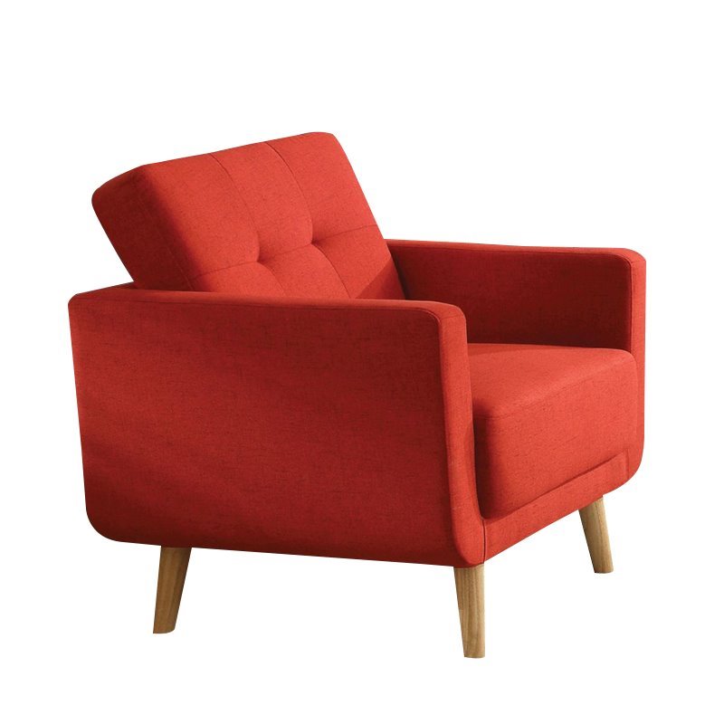 | ACME Furniture - Accent Chairs - 52662 - The Sisilla contemporary sofa set intersects the mid-century and today. This collection features linen fabric upholstery, tufted buttonless backrest and natural wooden legs. Bring home this collection, you will enjoy the comfortable seating and stylish look. Finish: RedMaterial: Linen, Pine Wood, Frame: Pine Wood & PolywoodButtonlest Tufted BackrestTight Back & Loose Seat CushionsWooden Tapered LegSpecifications:Overall Product Dimensions: 35H x 33W x 31DProduct Weight: 44 lbsseat height:19