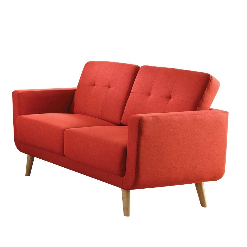 | ACME Furniture - Loveseats - 52661 - The Sisilla contemporary sofa set intersects the mid-century and today. This collection features linen fabric upholstery, tufted buttonless backrest and natural wooden legs. Bring home this collection, you will enjoy the comfortable seating and stylish look. Finish: RedMaterial: Linen, Pine Wood, Frame: Pine Wood & PolywoodButtonlest Tufted BackrestTight Back & Loose Seat CushionsWooden Tapered LegSpecifications:Overall Product Dimensions: 35H x 56W x 31DProduct Weight: 57 lbsseat height:19
