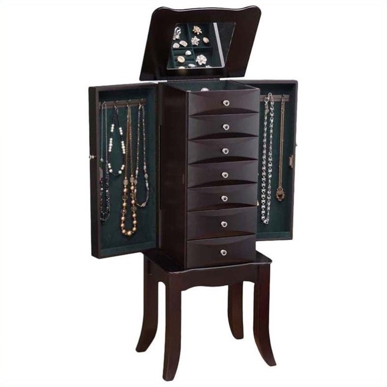| ACME Furniture - Jewelry Armoires - 16000 - A tall and specially produced jewelry cabinet to store and organize one's valuables with greater ease. Composed of solid wood veneer with green lning coating the drawers' insides.Java FinishIncludes side doors, small drawers and 2 large drawersMade of MDF, PB with veneer and solid woodGreen liningOpen lid with mirrorShaker legsSpecifications:Overall Dimensions: 40 H x 16 W x 12 DOverall Product Weight: 37 lbs
