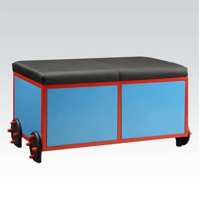 | ACME Furniture Tobi Train Storage Bench in Blue and Red and Black |