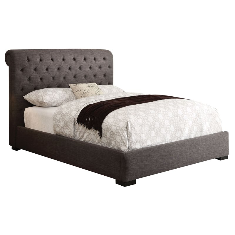 | ACME Furniture - Beds - 25280Q - The Westmist Collection is modern and beautiful for your bedroom. Featuring a tufted headboard , this stylish bed anchors your master suite or guest room in sophisticated style. Finish: Light BrownMaterial: Fabric, Wood FrameUpholstered BedButton TuftedWooden LegsLow Profile FootboardSpecifications:Overall Product Dimensions: 56H x 93W x 68DProduct Weight: 155.5 lbs