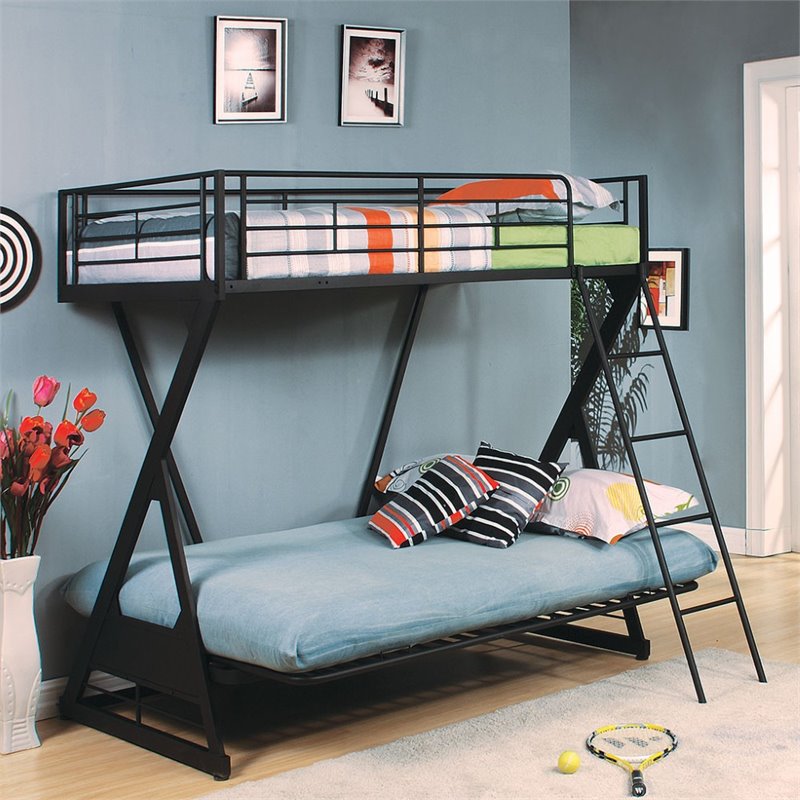 | ACME Furniture Zazie Twin over Full and Futon Bunk Bed in Sandy Black |