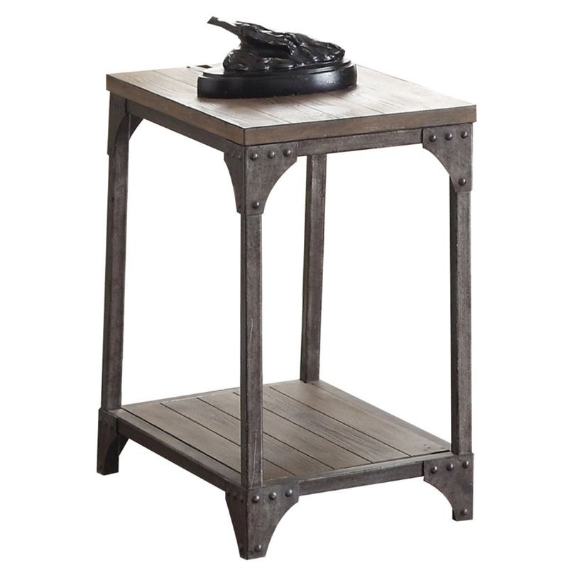 | ACME Gorden End Table in Weathered Oak and Antique Silver |
