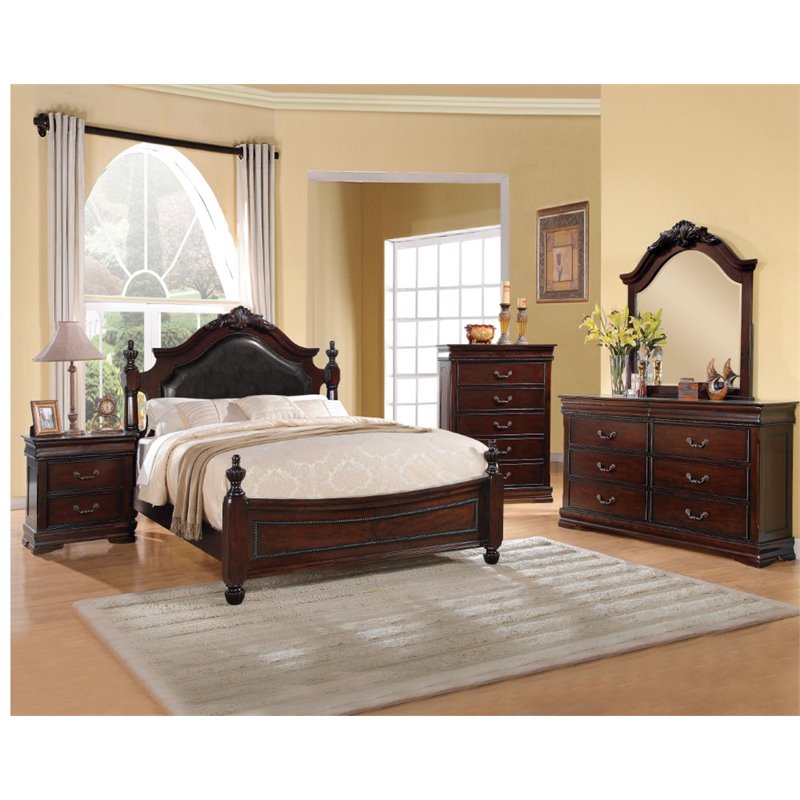 | ACME Furniture - Beds - 21880Q - The Gwyneth traditional bedroom collection reflects elegant styling and decorative features all at grand proportions. Starting with Grand Estate bed reflecting capped decorative carving style on headboard and detailed finial posts. It is a perfect choice for your favorite room. Finish: Black and CherryMaterial: Solid Pine, MDF With Gum Veneer3 Slats & 3 Sup. LegsSpecifications:Overall Product Dimensions: 62 H x 89.5 W x 66 DProduct Weight: 125 lbs