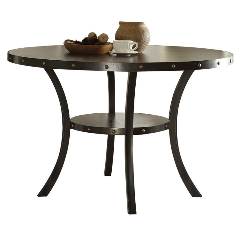| ACME Furniture - Dining Tables - 72055 - The Hadas collection has a rectangular dining table or a round dining table with side chairs. The table with metal legs and nail-head trim and the side chairs with walnut beige fabric. This collection with brighten up your dinning room to a new level of style. Finish: Oak; Materials: MDF, Melamine Veneer, Metal; Contemporary; Nail-head Trim. Specifications:Overall Product Dimensions: 30 H x 48 W x 48 D; Product Weight: 65 lbs.