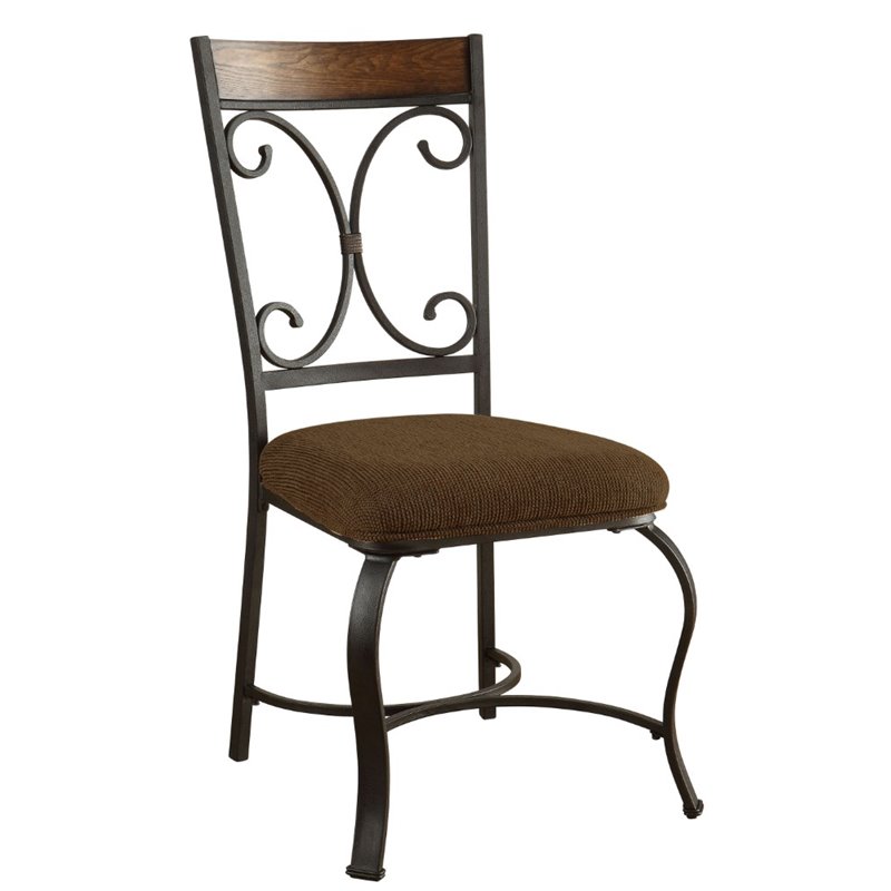| ACME Furniture - Dining Chairs - 72252 - The Haskesa dining collection features hardwood, sculptured antique black steel, cherry finish wood top with slate insert into a unique traditional look that will complement any décor. The side chair has a wooden insert, and a cushioned seat covered in a tweedy medium brown chenille fabric, and curvy front leg with slim straight back legs. This dinning set will make your dinning area full with style. Finish: Cherry, Antique BlackMaterials: Metal Tube, Bending Wood, FabricContemporarySpecifications:Overall Product Dimensions: 40 H x 18 W x 22 DProduct Weight: 32 lbsSeat Depth: 18Seat Height: 19