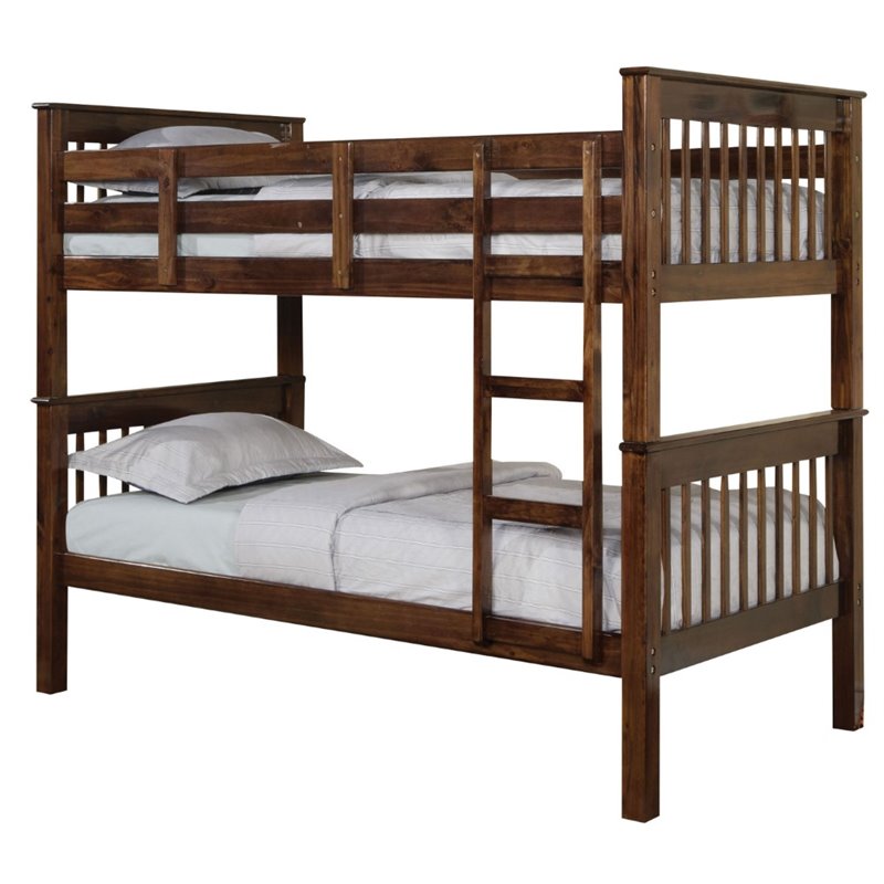 | ACME Furniture - Bunk Beds - 02415 - The Haley collection bunked was designed to save space is the perfect solution for your children's bedroom. Features classic mission style headboard and footboard, full-length guardrail, fixed built-in ladder. Crafted in selected wood and veneers in warm walnut finish. Finish: WalnutMaterials: Pine Wood, PlywoodContemporaryFull Length GuardrailSlat System IncludedSpecifications:Overall Product Dimensions: 65 H x 81 W x 44 DProduct Weight: 119 lbsWeight Capacity: 165 lbs Top, 200 lbs Bottom (Top Bed & Not be used for children under 6 years of age.)