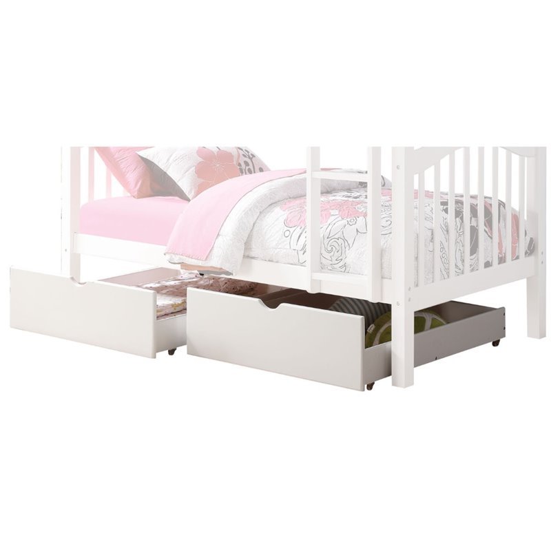 | ACME Furniture - Kids Underbed Drawers - 02357 - Modern styling with panels in various finish, the Heartland collection can turn any room into a work of art. This collection features a front ladder, side rail and also has an optional trundle and drawers to meet your diverse needs. This is also convertible into two separate twin beds, which will be an ideal piece for your kids room. Finish: WhiteMaterials: Pine Wood, Birch Veneer, Plywood, MDFTransitionalSpecifications:Overall Product Dimensions: 11 H x 37 W x 41 DProduct Weight: 31 lbsWeight Capacity: 165 lbs Top, 200 lbs Bottom (Top Bed & Not be used for children under 6 years of age.)