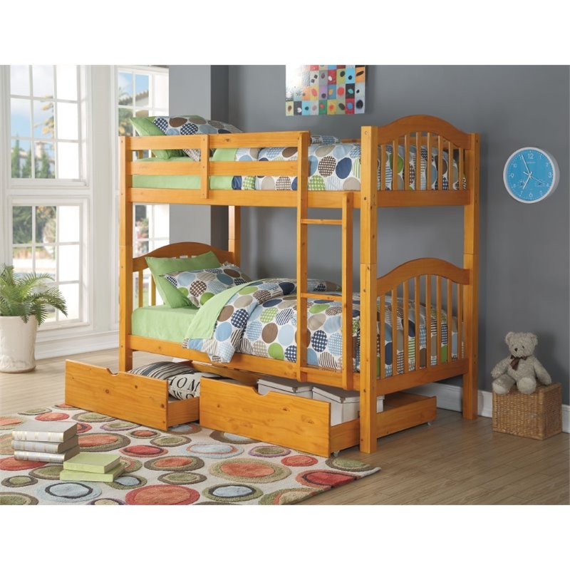 | ACME Heartland Twin over Twin Bunk Bed in Honey Oak |