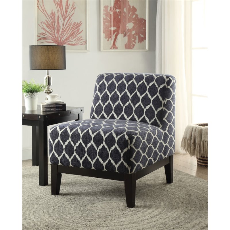 | ACME Furniture - Accent Chairs - 59501 - The Hinte armless slipper chair features contemporary style, padded back and seat cushion, covered with selected fabric pattern, and complemented by dark brown finish tapered wood legs. Create elegant and sleek contemporary style that is perfectly suited for any living room environment. Finish: Dark BlueMaterial: Chenille Fabric, Foam, Poplar WoodKD, Armless Slipper ChairTight Back & Seat Cushion(NO Arms)Wooden Trim Base & Tapered Leg: Dark Brown (Poplar Wood)Specifications:Overall Product Dimensions: 35 H x 28 W x 32 DProduct Weight: 33 lbsWeight Capacity: 250 lbs