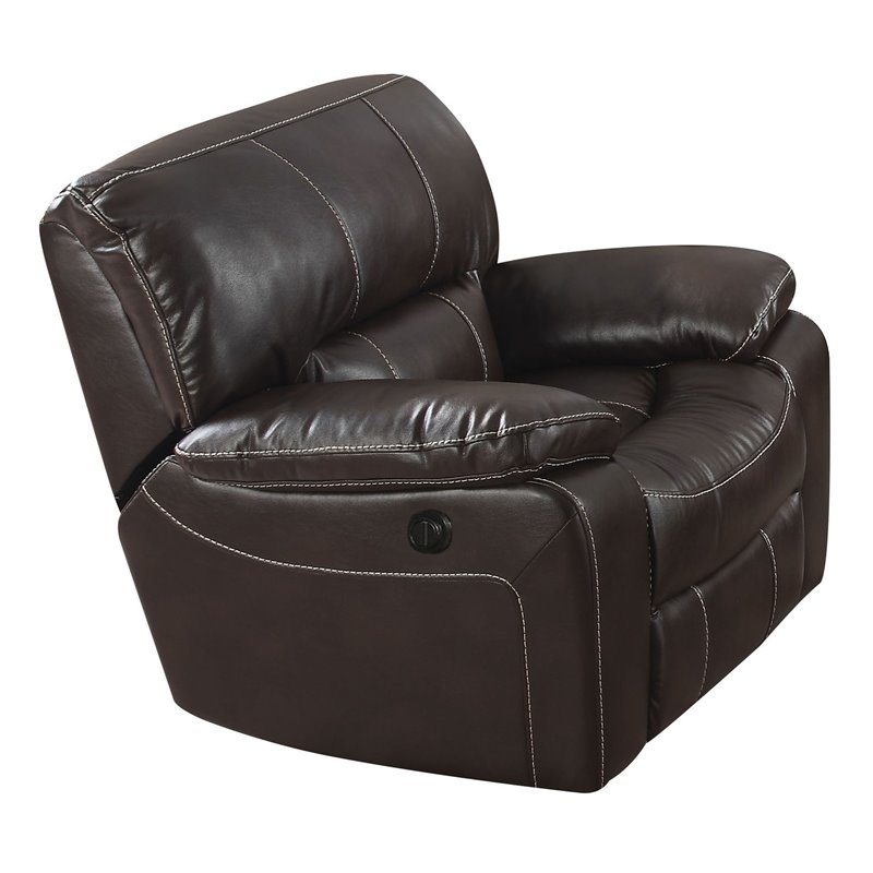 | ACME Furniture - Recliners - 52137 - The Kimberly power motion recliner offers comfort, style and value for any home. A smooth brown leather upholstery provides relaxation from head to toe. It’s great for any space and perfect for you laying down on it to relax, take a nap or read a book. This is the one that you can’t miss. Finish: BrownMaterials: Leather-Aire, Ply, Foam, MetalContemporaryTight Back and Seat CushionPower FunctionSpecifications:Overall Product Dimensions: 40 H x 44 W x 37 DProduct Weight: 96 lbsSeat Depth: 21Seat Height: 19