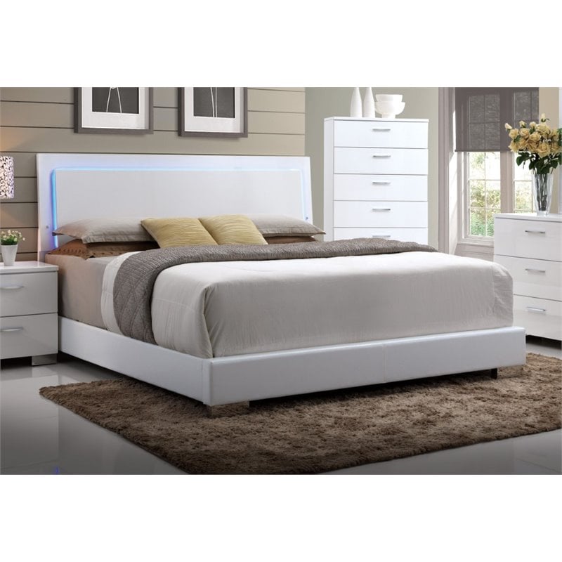 | ACME Lorimar Queen Panel Bed with LED in White |