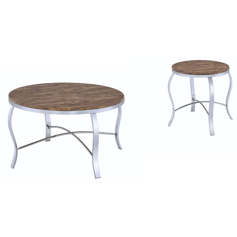 | ACME Furniture - Coffee Table Sets - 81710 - With its chrome finish base and weathered dark oak top, this Malai coffee and end table set combines the contemporary and tradition to a transitional style. This table set is not just a functional table, but it is an architectural art piece with its curved legs and middle X crossbars support. This collection will be the perfect accent piece with your any style of living room. Finish: Weathered Dark Oak, ChromeMaterials: PVC Veneer, Melamine Paper, Particle Board, Metal TubeContemporarySpecifications:Coffee Table Dimensions: 19 H x 35 W x 35 DEnd Table Dimensions: 23 H x 25 W x 25 DProduct Weight: 45 lbs