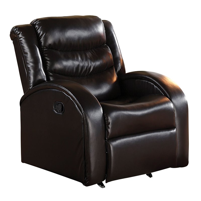 | ACME Furniture - Recliners - 50832 - The Noah rocker recliner offers comfort, style and value for any home. A smooth bonded leather match upholstery provides relaxation from seat to toe with an easy to reach external latch handle for operating the reclining mechanism. This is the great one that you can't miss. Finish: EspressoMaterials: BLM, Wood Frame, Foam, MetalContemporaryPocket Coil SeatingTight Back and Seat CushionSpecifications:Overall Product Dimensions: 40 H x 36 W x 38 DProduct Weight: 77 lbsSeat Depth: 21Seat Height: 21Weight Capacity: 300 lbs