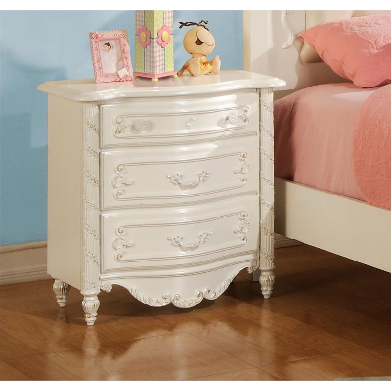 | ACME Furniture - Bachelor's Chest - 01020 - The Pearl youth romance bedroom collection reflects all things for princess in your life. This collection features pearl white finish and gold accent hand brush, decorative floral trims throughout, also reflected in the complementary bow front decorative floral trim on all cases. All princesses would love the elegance and styling found in this collection Finish: Pearl White and GoldMaterial: Poplar, MDF, PB, Poly8 drawersCenter Metal Glide, DT: French Front & Enlish Back, Felt Lined Top drawersSpecifications:Overall Product Dimensions: 35 H x 54 W x 18 DProduct Weight: 115 lbs