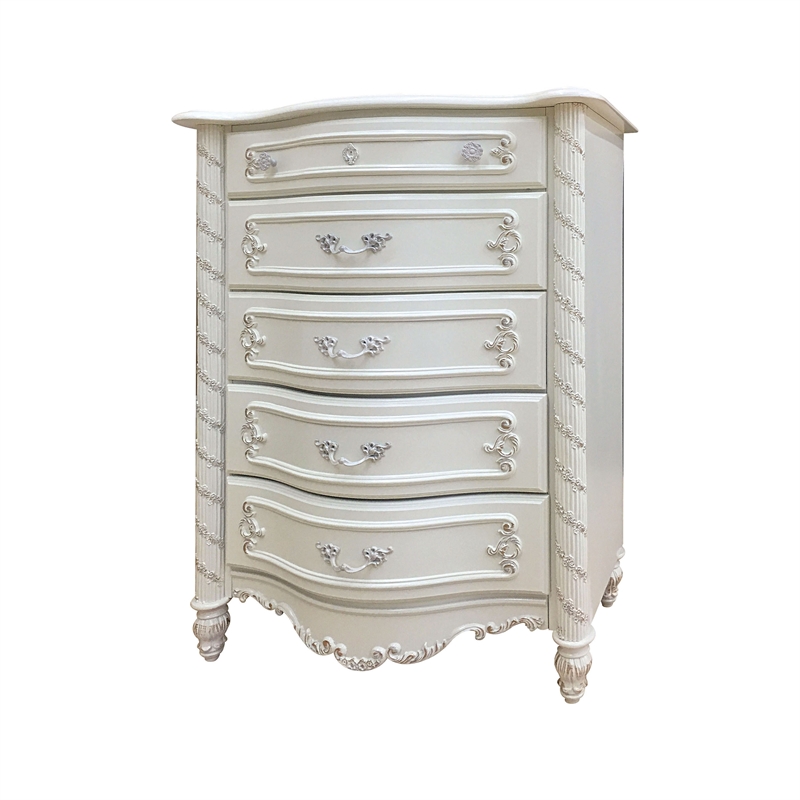 | ACME Furniture - Chests - 01016 - The Pearl youth romance bedroom collection reflects all things for princess in your life. This collection features pearl white finish and gold accent hand brush, decorative floral trims throughout, also reflected in the complementary bow front decorative floral trim on all cases. All princesses would love the elegance and styling found in this collection Finish: Pearl White and GoldMaterial: Poplar, MDF, PB, Poly5 drawersCenter Metal Glide, DT: French Front & Enlish Back, Felt Lined Top drawersSpecifications:Overall Product Dimensions: 42 H x 32 W x 18 DProduct Weight: 49 lbs