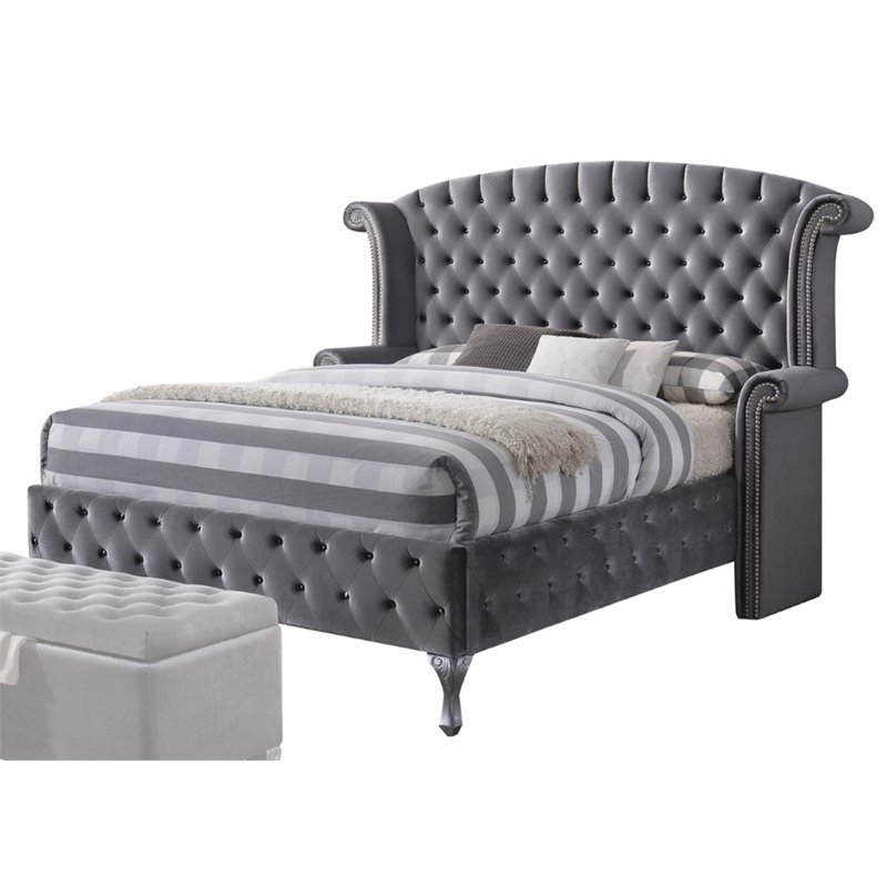 | ACME Furniture - Beds - 25820Q - The Rebekah collection has a choice for an eastern king bed or a queen bed that features a button tufted headboard and footboard. Wingback Headboard create the royal atmosphere to the bedroom. This collection definitely will catch everyone’s eyes and will bring a sleek style to your favorite bedroom. Finish: GrayMaterials: Fabric, Tropical Wood, MDF, Plywood, FoamContemporaryBox Spring Not RequiredSpecifications:Overall Product Dimensions: 66 H x 87 W x 81 DProduct Weight: 187 lbs