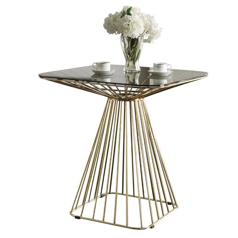 | ACME Furniture - Dining Tables - 71965 - This Rianne dining set is defined by its transformation of future design elements into a modern look. The table features smoky tempered glass table top and metal square cone base. The matching chairs feature metal seat and armless metal backrest. With simple and clean lifestyle, this dining collection offers clean line and metal construction to make your dining room full with fashion style. Finish: Gold, SmokyMaterials: Metal, GlassContemporarySpecifications:Overall Product Dimensions: 30 H x 30 W x 30 DProduct Weight: 50 lbs