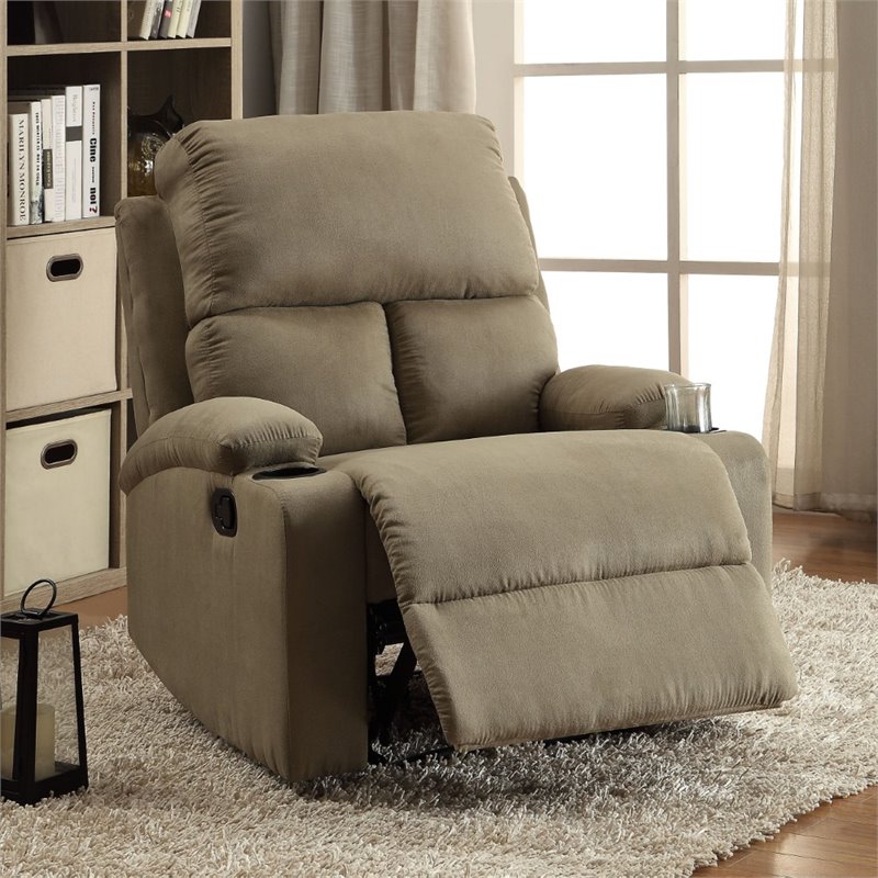 | ACME Furniture - Recliners - 59556 - For ultimate comfort, the Rosia microfiber recliner is covered with smooth fabric in various color options to match with any home decor. Additional back comfort is created by the vertical stitch line and tuft while the horizontal section makes room for your shoulders. Sweeping arched overstuffed armrests are added to the comfort level by elevating your arms at an angle while reclined. Finish: Sage Tight Back and Seat Cushion Seat: Pocket Coil TBCPillow Top ArmArm With Cup HolderExternal Latch Handle (No Power)Motion: Reclining FunctionSpecifications:Overall Product Dimensions: 39 H x 32 W x 37 DProduct Weight: 78 lbs