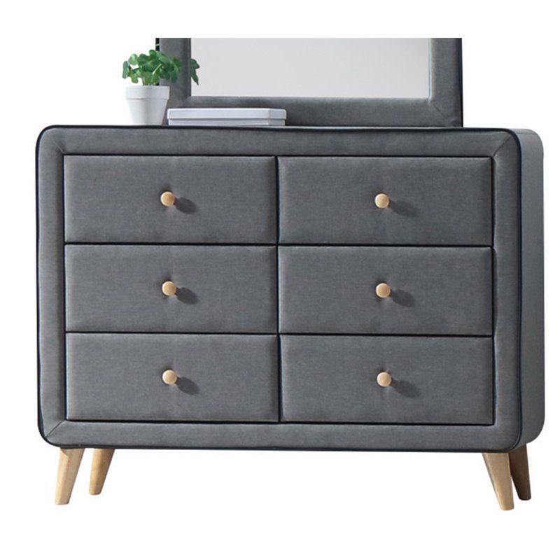 | ACME Valda 6 Drawer Dresser in Light Gray Fabric |
