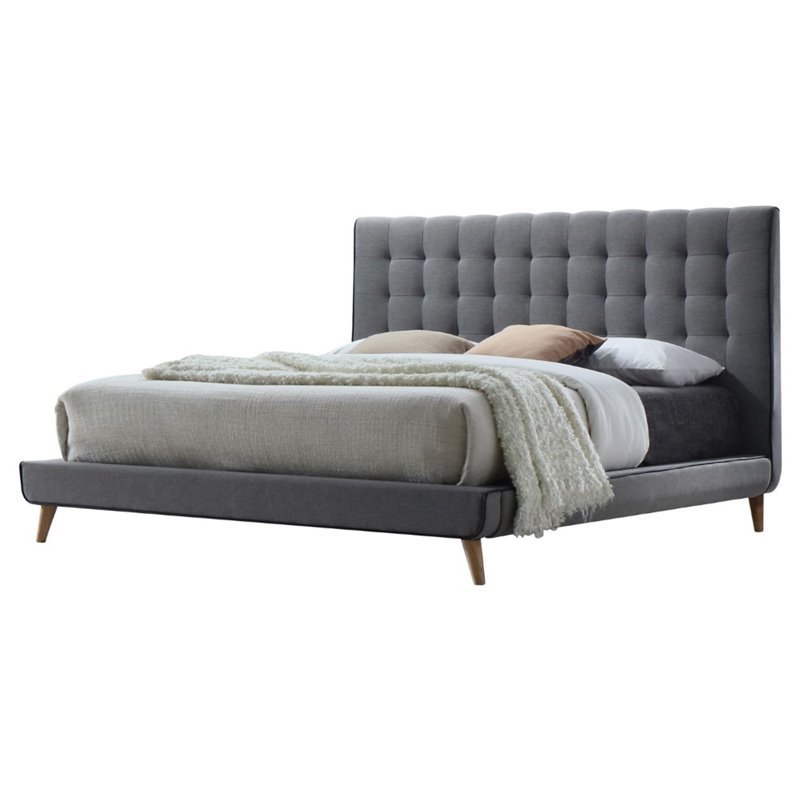 | ACME Furniture - Beds - 24517EK - Beautifully crafted and elegantly finished, our Valda bed is finished with buttonless tufting and has a soft, plush appearance. Light gray fabric with black welt trim shows your unique taste & makes your bedroom looks more than better. This will be the one that you can't miss. Finish: Light GrayMaterials: Fabric, Wood, LVL, FoamContemporaryBox Spring Not RequiredSpecifications:Overall Product Dimensions: 46 H x 85 W x 89 DProduct Weight: 160 lbs