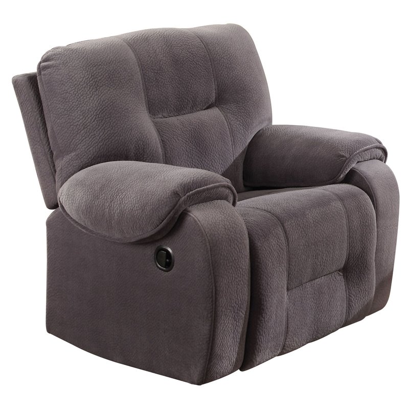 | ACME Furniture - Recliners - 50802 - This Acme Villa recliner is a comfortable and stylish addition to your living room. Its light gray champion fabric is textured and soft that provide relaxation from head to toe. Comfort features include an overstuffed back, saddle style arms, and smooth recline mechanism. It will be a great piece that helps you to relax after a long busy day. Finish: Light GrayMaterials: Champion, Wood Frame, FoamContemporaryTight Back and Seat CushionSpecifications:Overall Product Dimensions: 39 H x 40 W x 39 DProduct Weight: 83 lbsSeat Depth: 22Seat Height: 19Weight Capacity: 300 lbs